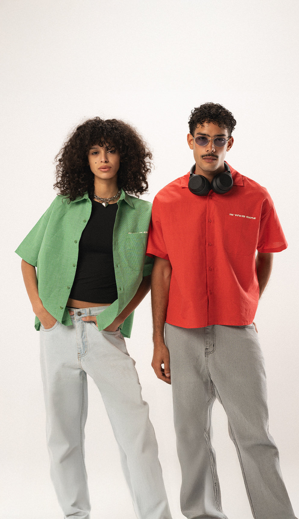 Green Grid Boxy Linen Shirt
