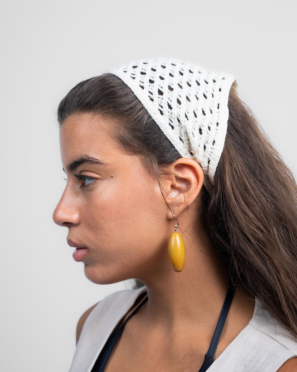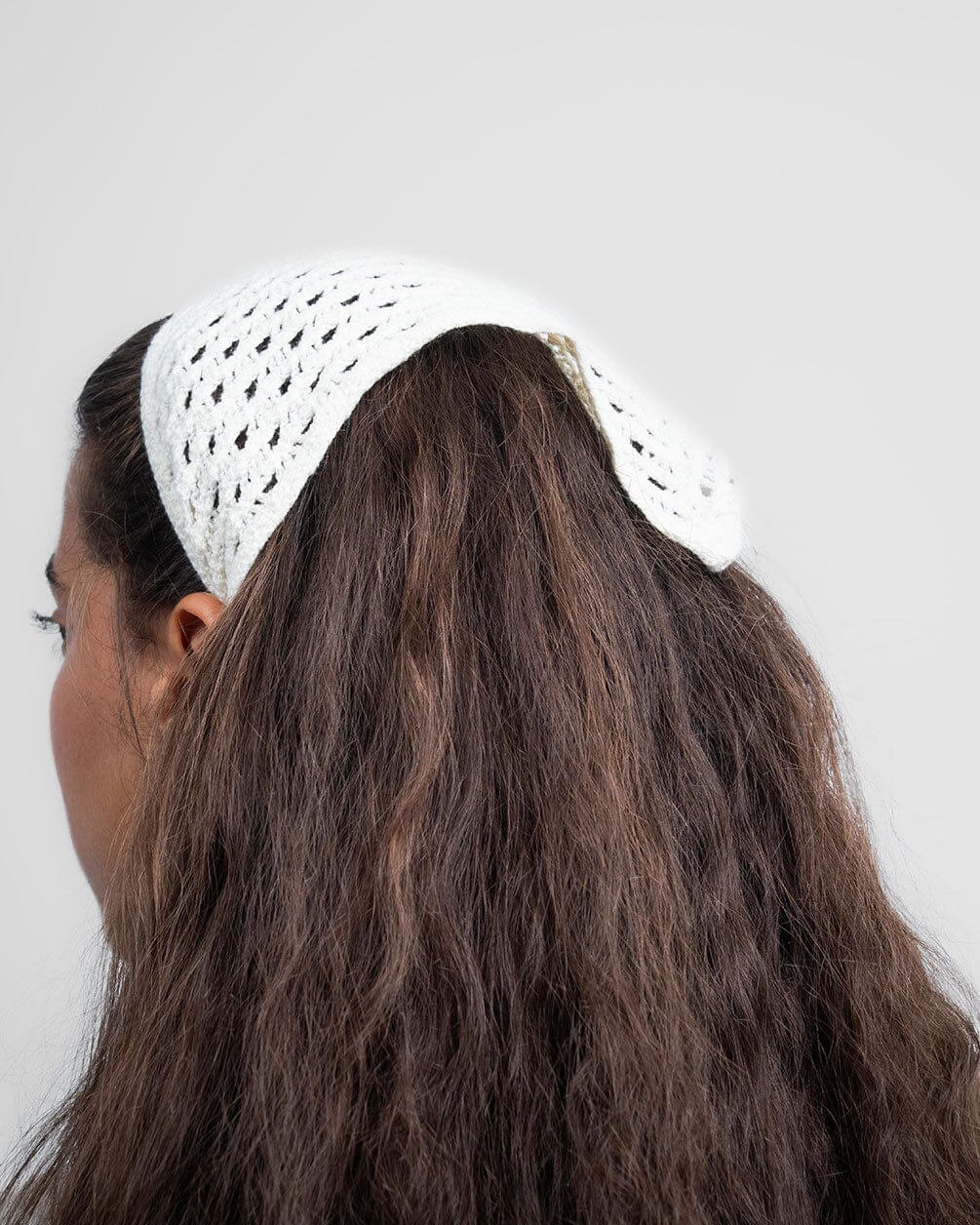 A lightweight crochet bandana with a delicate  pattern and soft texture. Perfect for adding a stylish touch to any outfit.