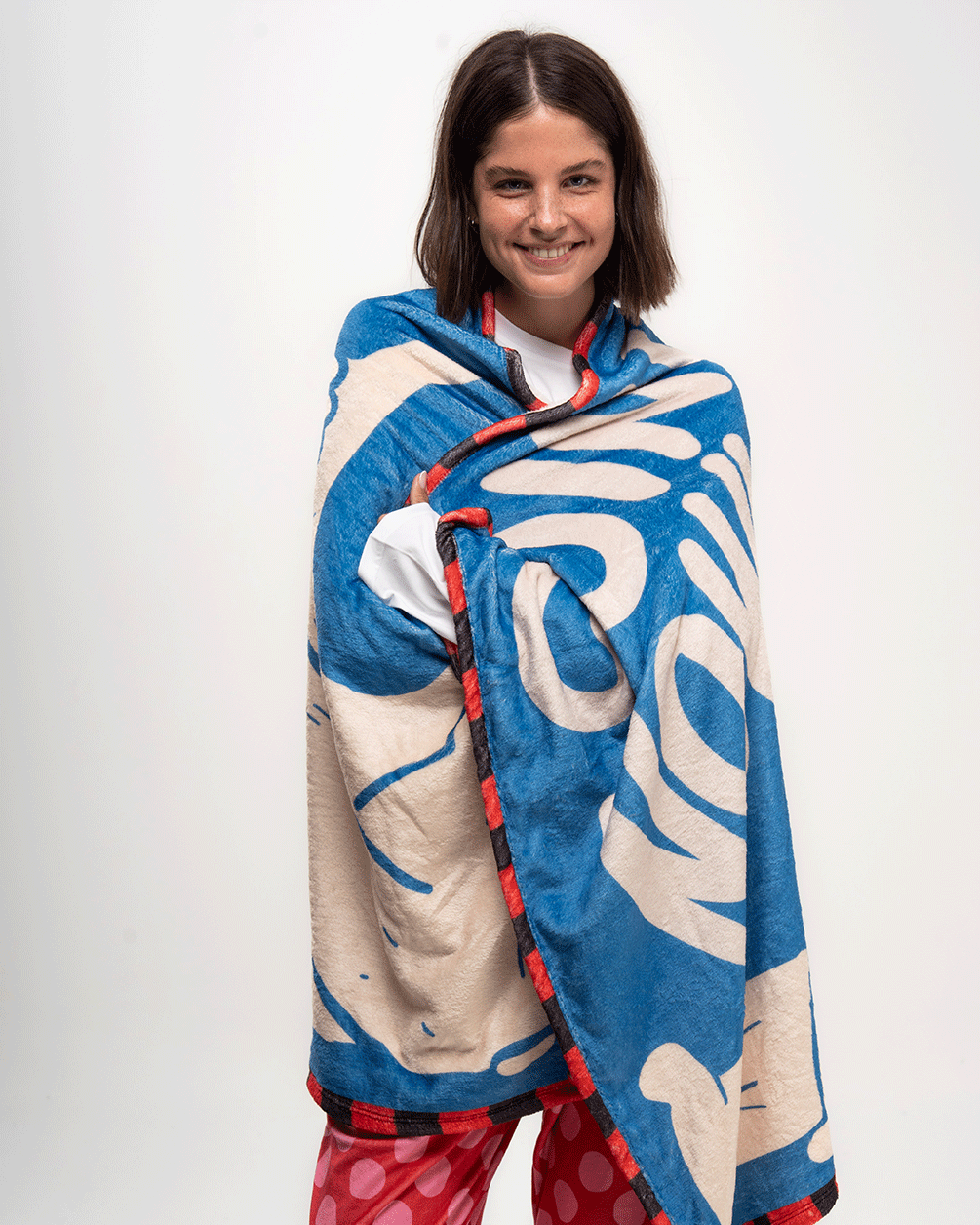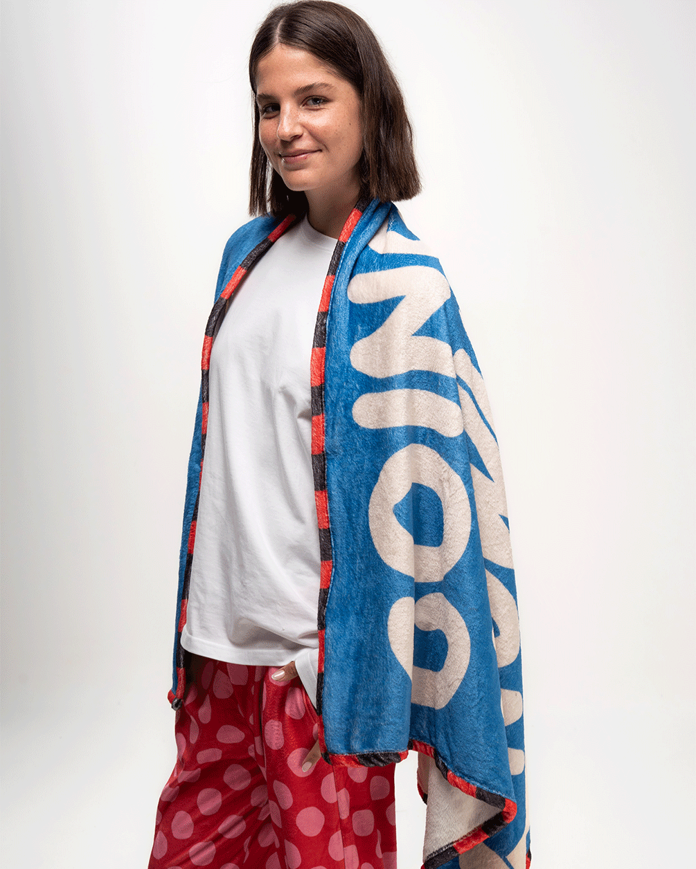 Keeps you warm, indoors and outdoors. A fluffy polar material with statement IYS designs.