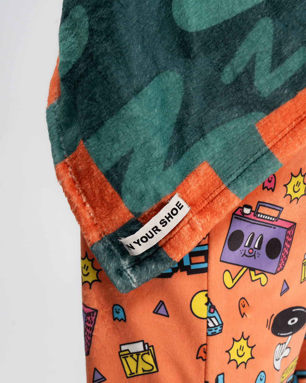Keeps you warm, indoors and outdoors. A fluffy polar material with statement IYS designs.