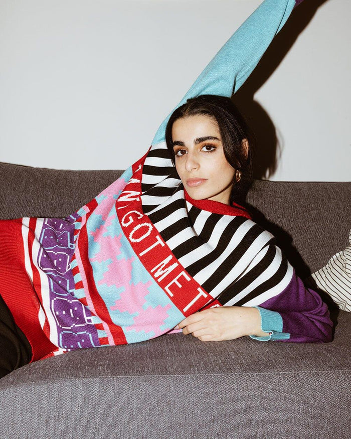 Blue Oversized Knit Jacket Knitwear IN YOUR SHOE Blue Regular Knit Pants Knit Pants IN YOUR SHOE