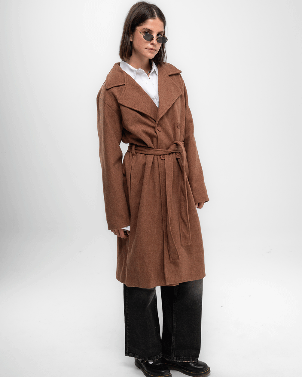 Your essential unisex winter coat, ,features a timeless design with wide lapels, a waist tie, and two convenient pockets for your phone, wallet, keys, or hands.