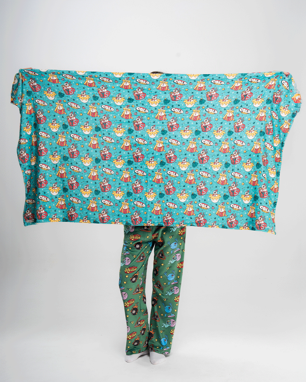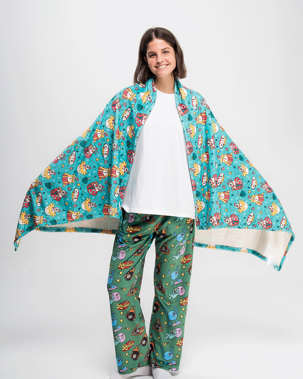 Keeps you warm, indoors and outdoors. A fluffy polar material with statement IYS designs.