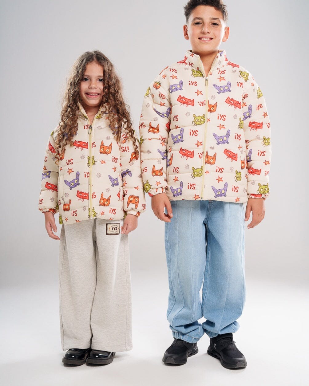A bold, all-over print puffer with a comfy oversized fit. Warm, lightweight, and made for kids who love staying cozy while standing out.