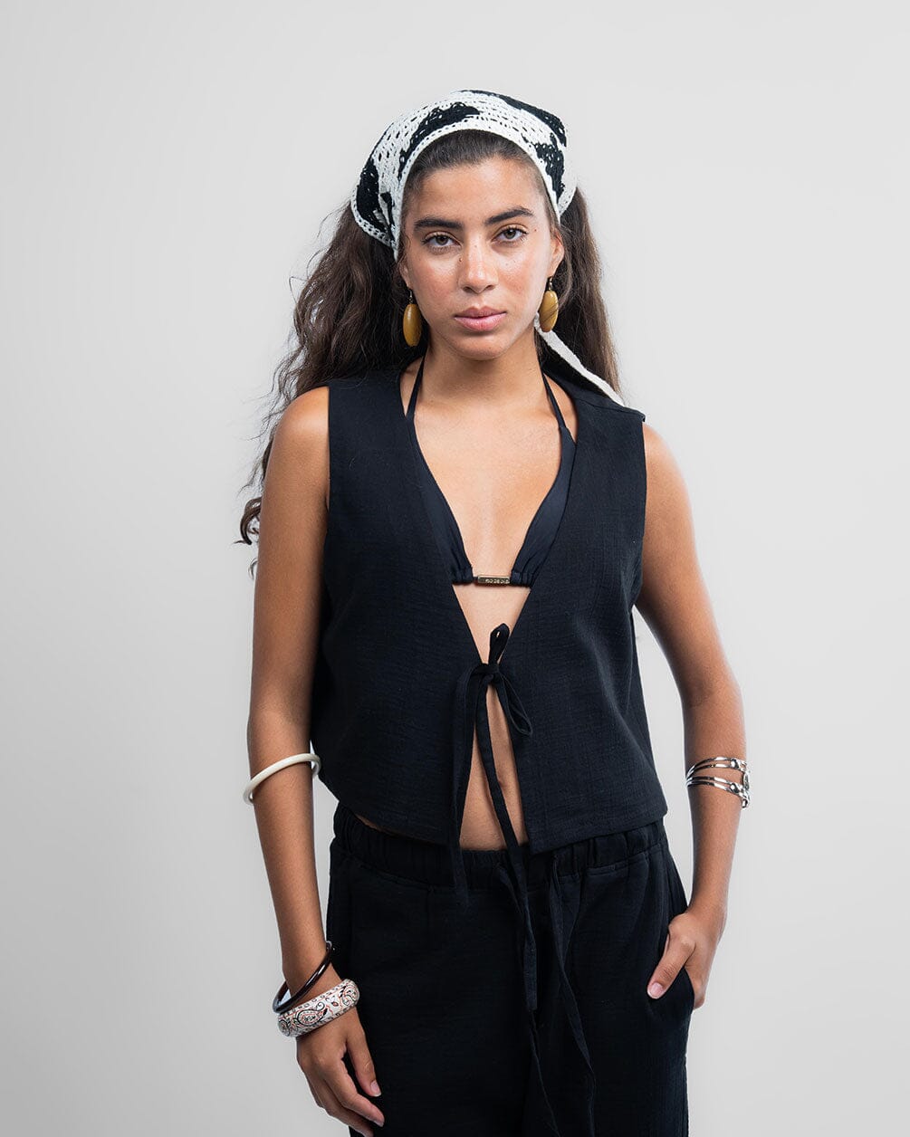 A lightweight crochet bandana with a delicate  pattern and soft texture. Perfect for adding a stylish touch to any outfit.