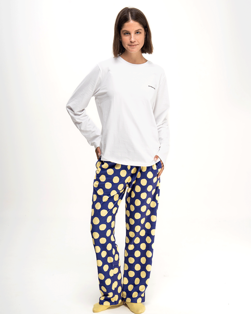 Navy Blue & Yellow Polka Fluffy Pjoys