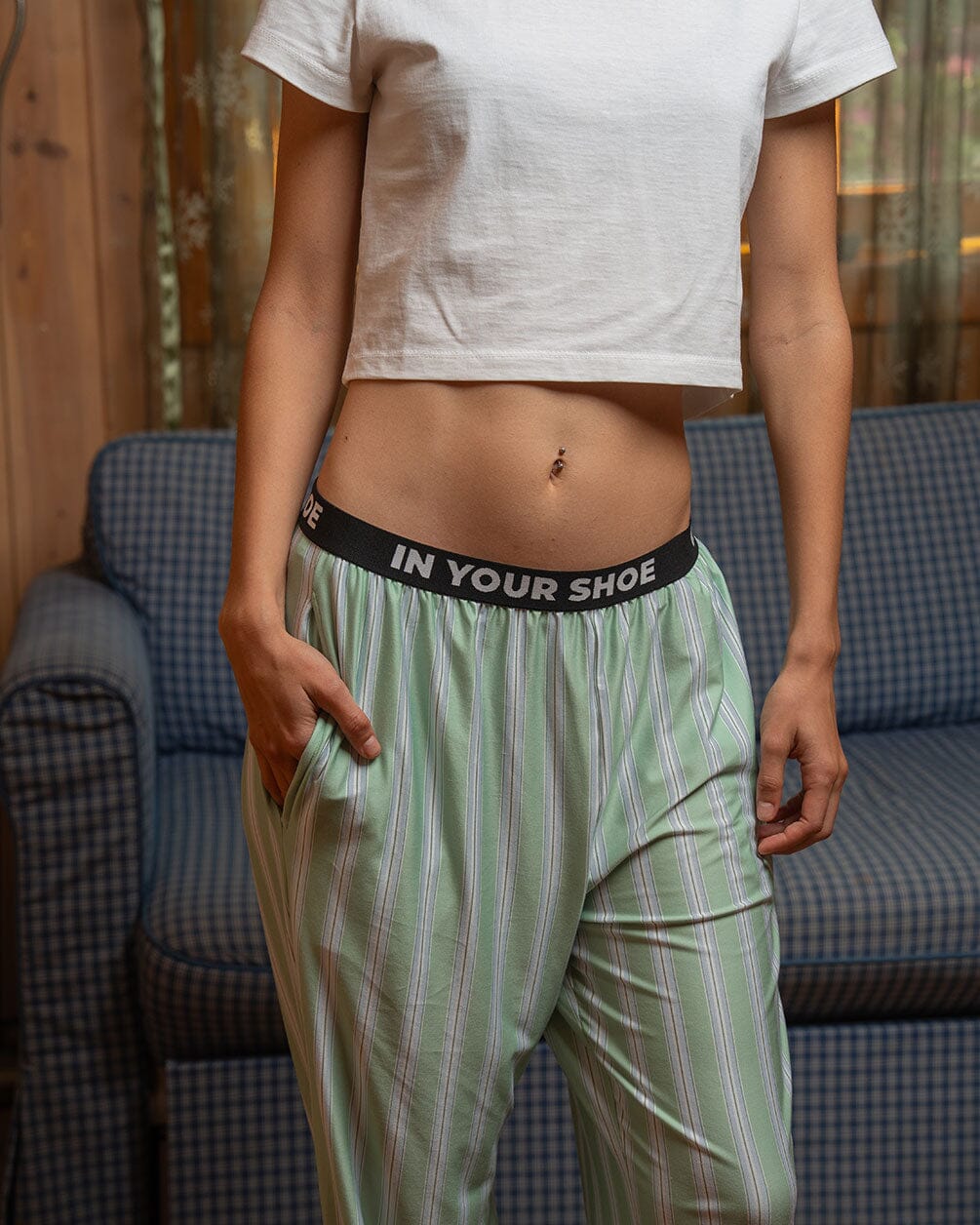 Pyjama pants for stripe-stalking minimalists. Fresh greens, zero effort—lounge like a low-key legend.