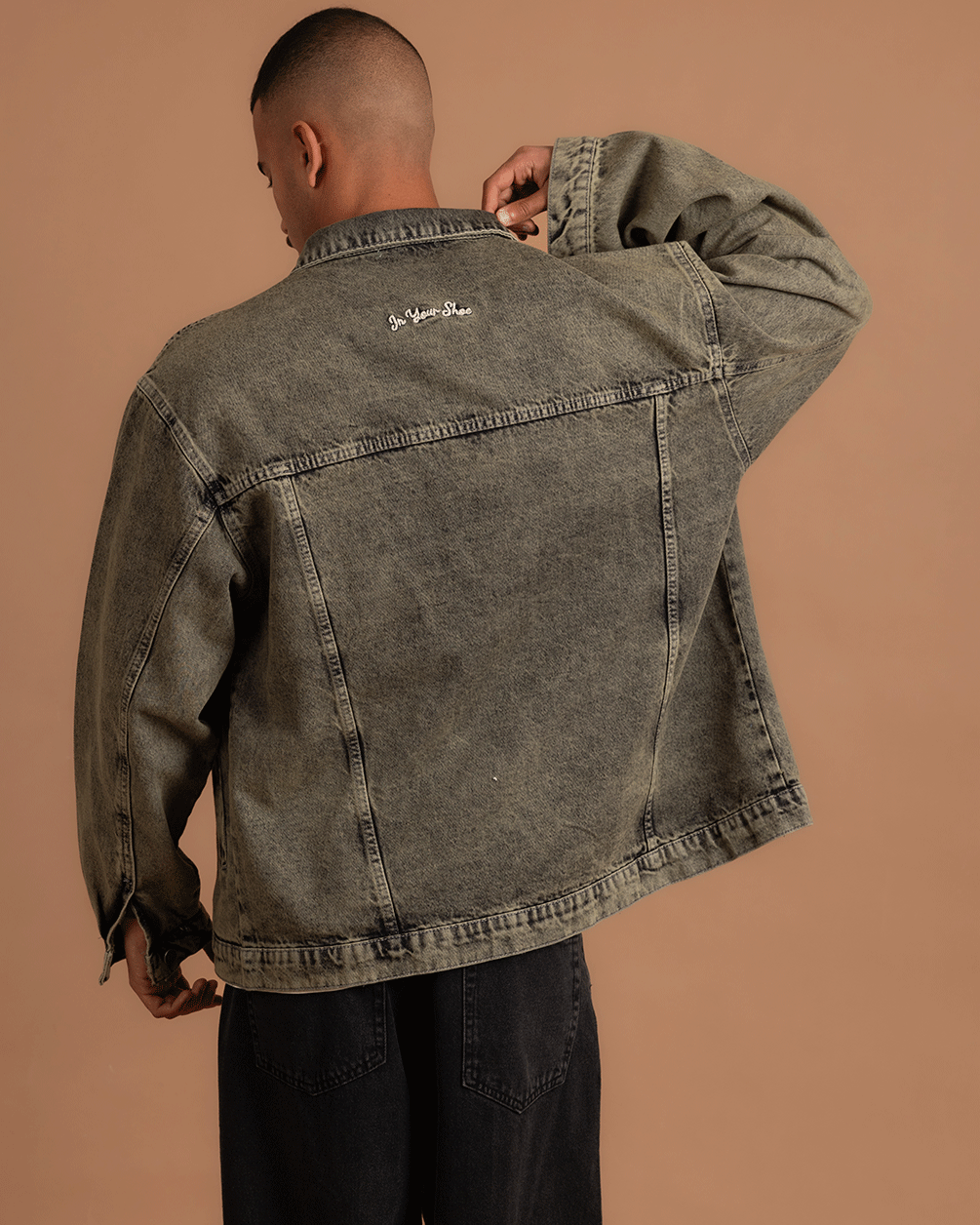 Make a statement with this unisex olive oversized denim jacket. With a classic button-up style and a relaxed fit, it’s great for layering and elevating your everyday style.