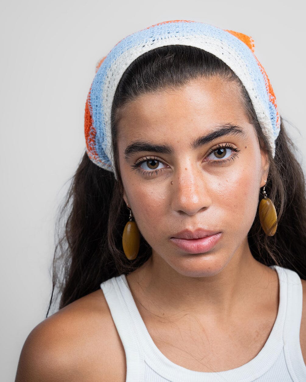 A lightweight crochet bandana with a delicate pattern and soft texture. Perfect for adding a stylish touch to any outfit.