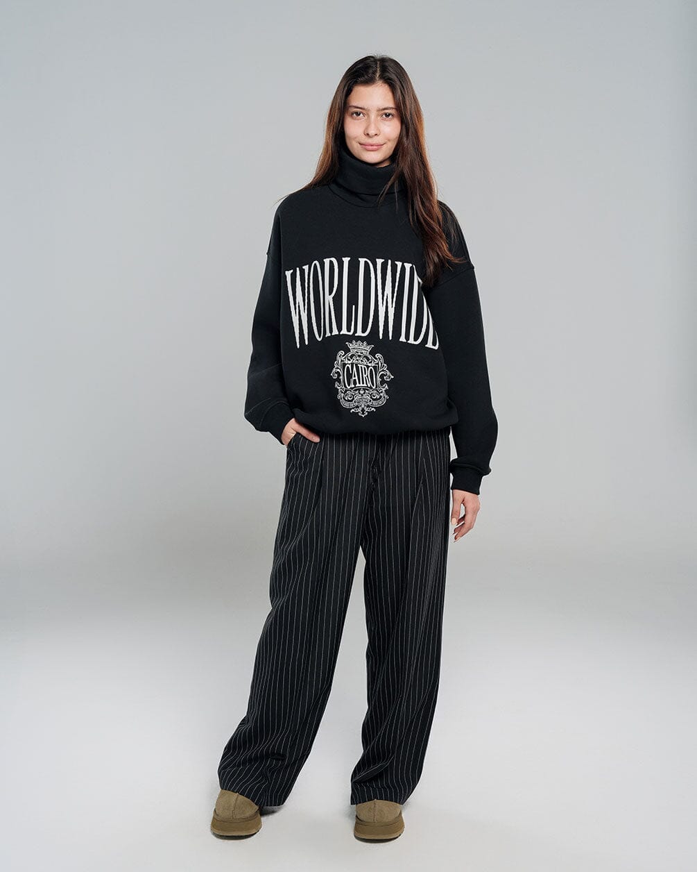 Black Worldwide Oversized Mock Neck Crewnecks IN YOUR SHOE S