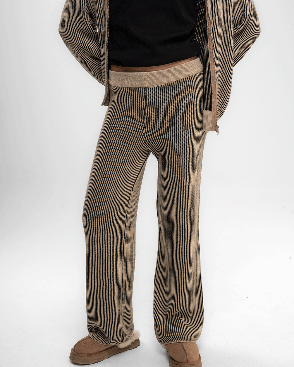 These knitted pants combine effortless style with ultimate comfort. Featuring a soft ribbed texture, a relaxed fit, they’re perfect for lounging or casual outings. Pair them with the matching hoodie for a cozy, put-together look.
