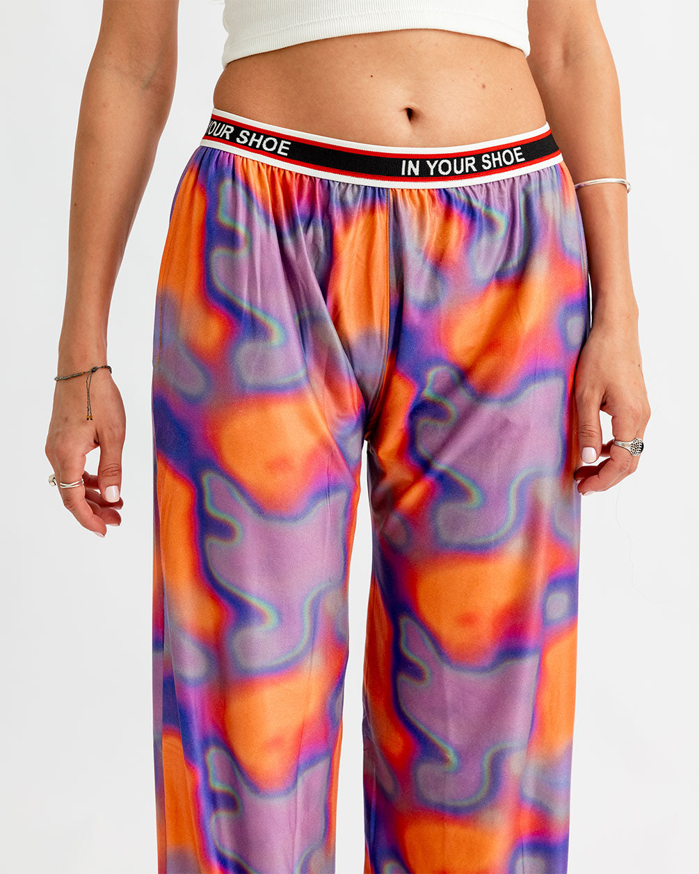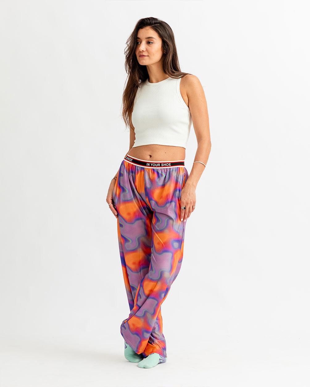Pyjama pants for northern light fakers. Cosmic purples, zero flights—borealis from your bed.