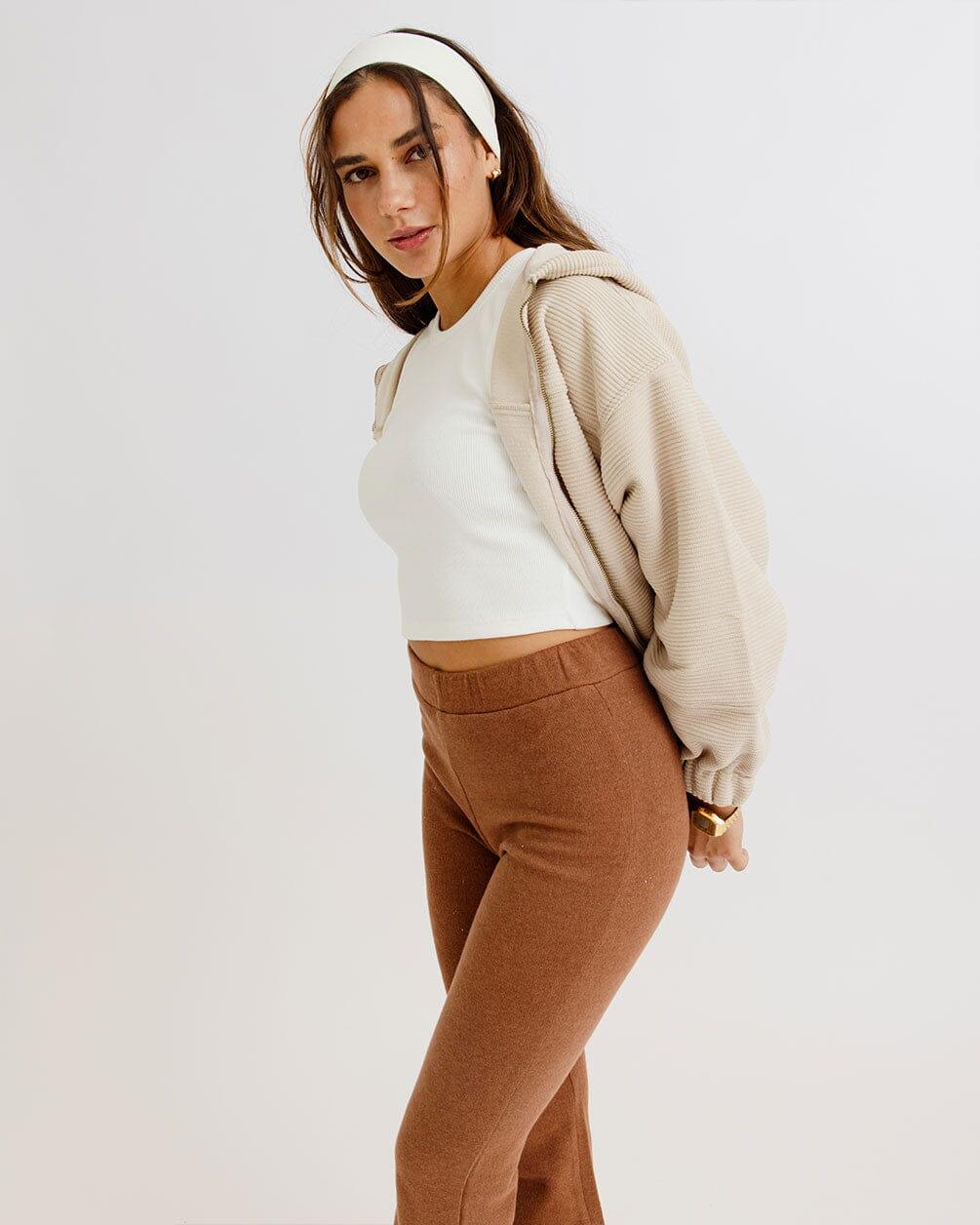 The cotton kashmir material gives those bottoms a very retro look, completed with a high-waist fit.