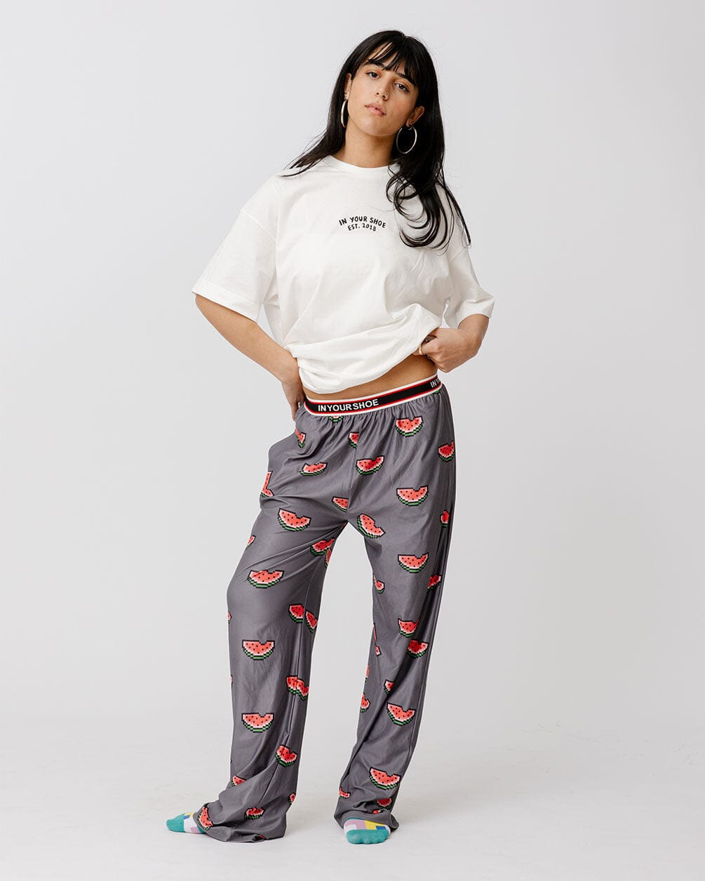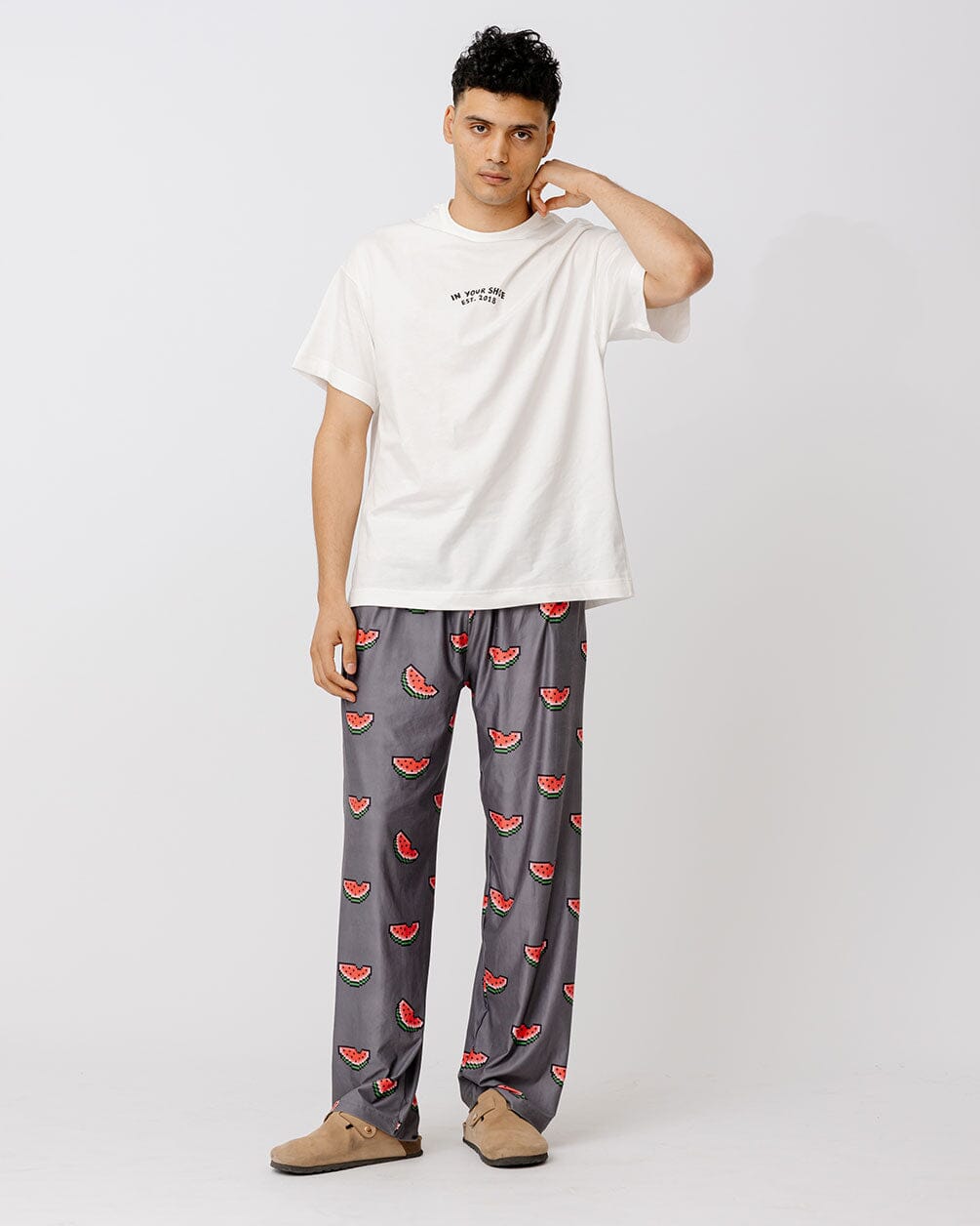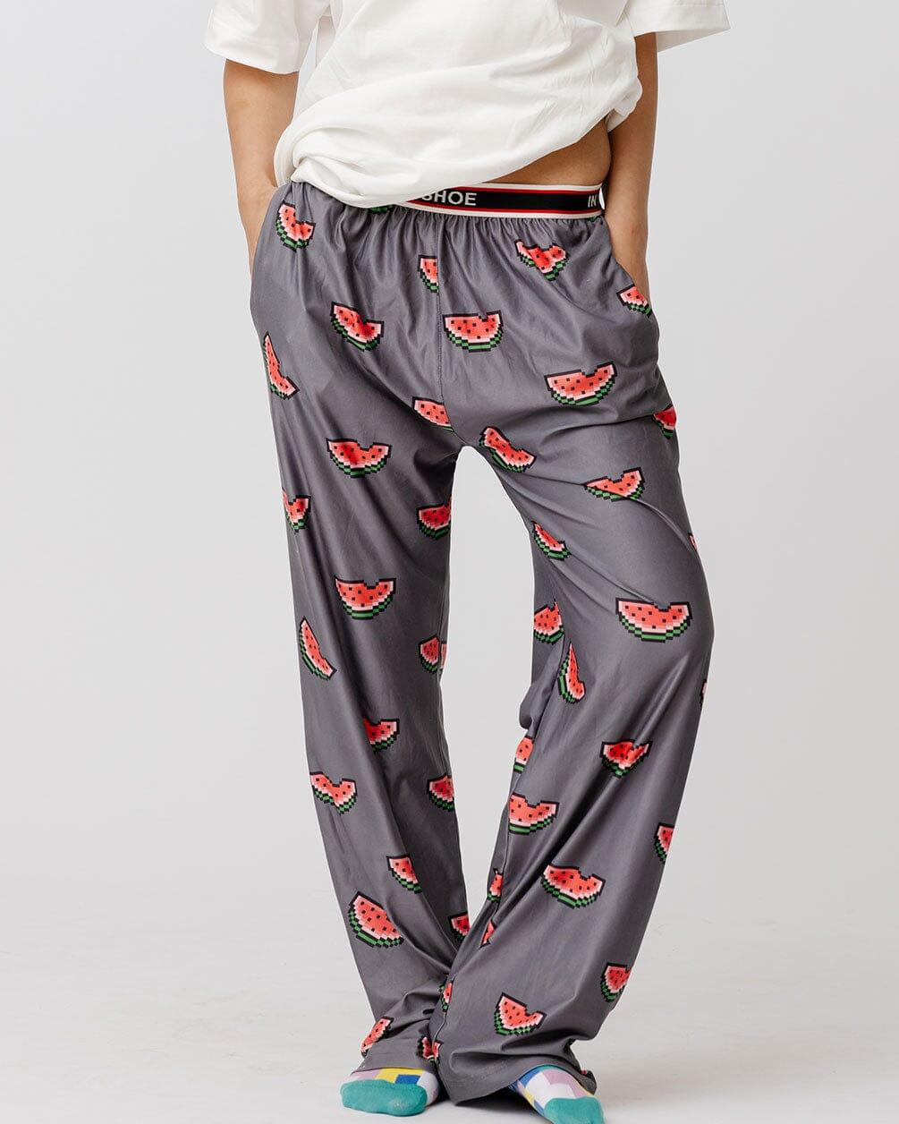 Pyjama pants for fruit-fetish rebels. Watermelon liberation prints—juicy freedom, zero seeds.