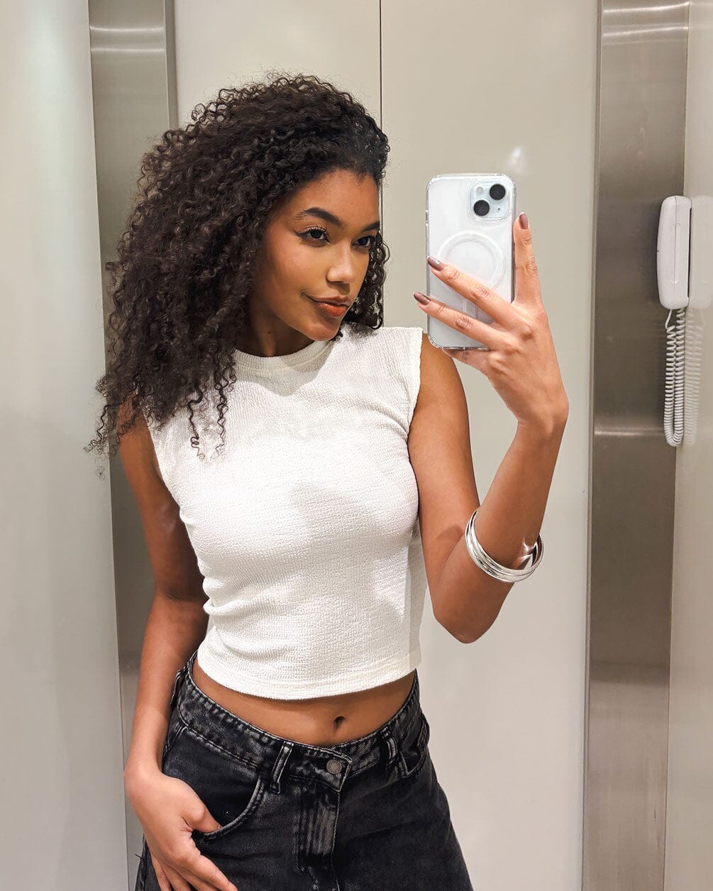 Upgrade your basics with this textured sleeveless top. Designed with a subtle crinkle effect, it adds effortless style to any look. Perfect for layering or wearing solo.