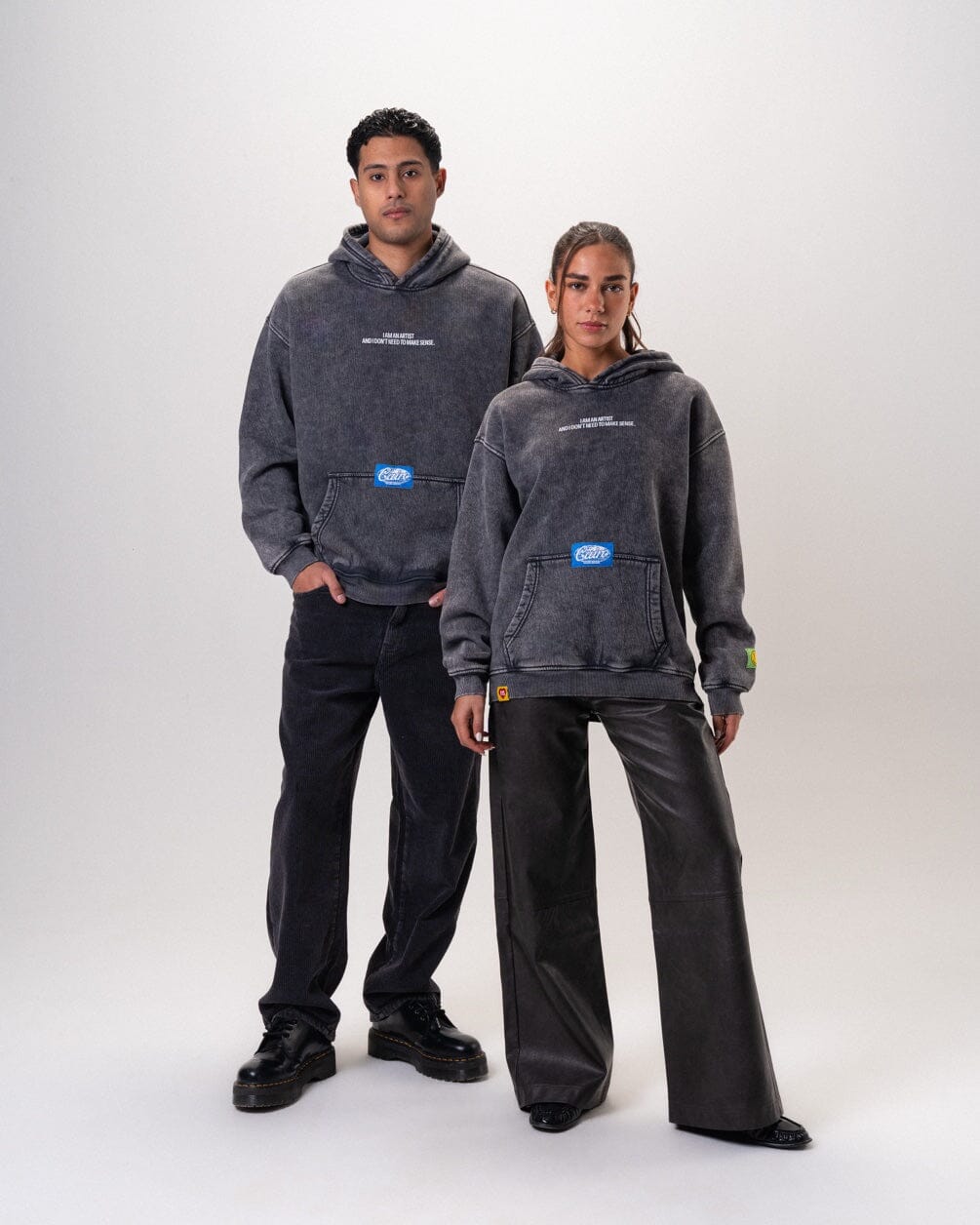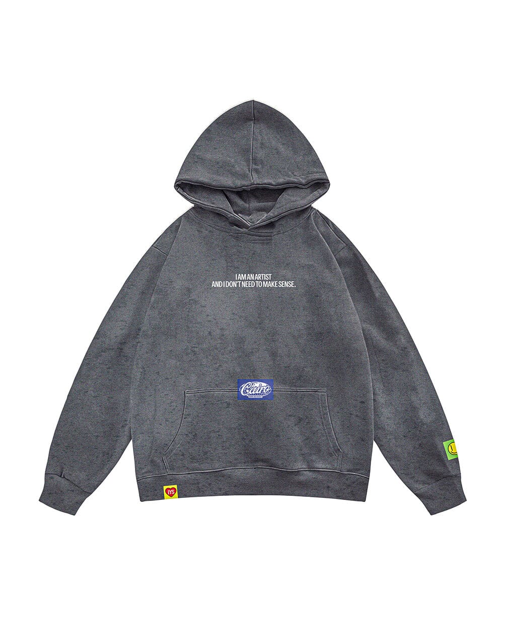 A washed hoodie packed with badges—each one a little statement, a little chaos, and a lot of personality. Soft, comfy, and made to turn heads without trying too hard.