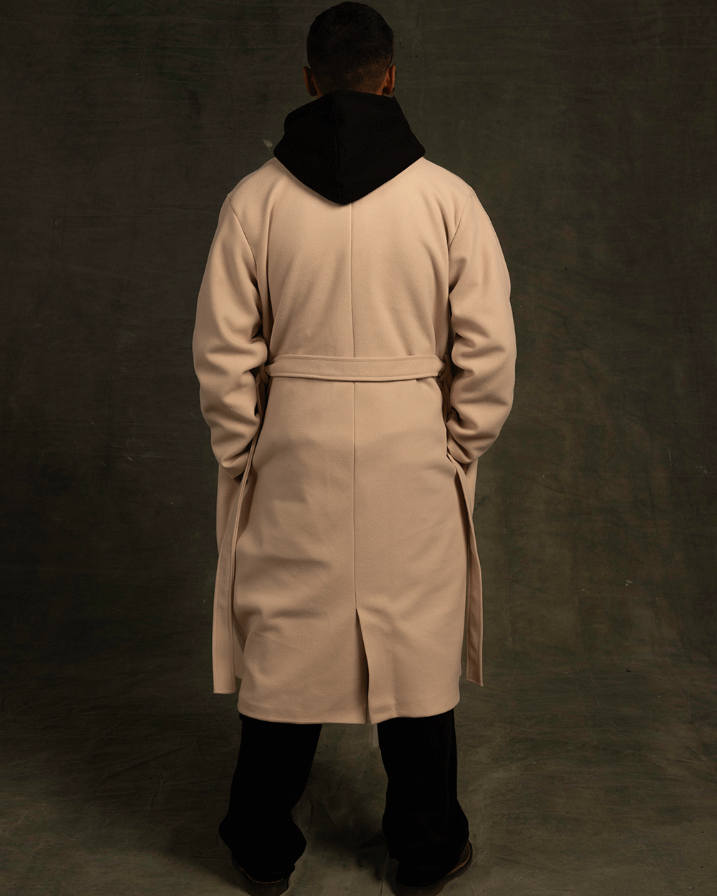 Your essential unisex winter coat, crafted from soft gogh fabric, features a timeless design with wide lapels, a waist tie, and two convenient pockets for your phone, wallet, keys, or hands.