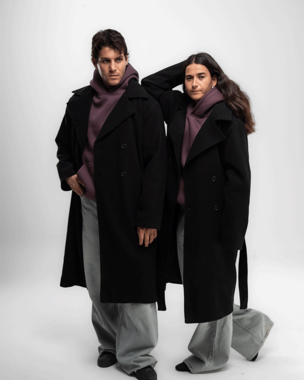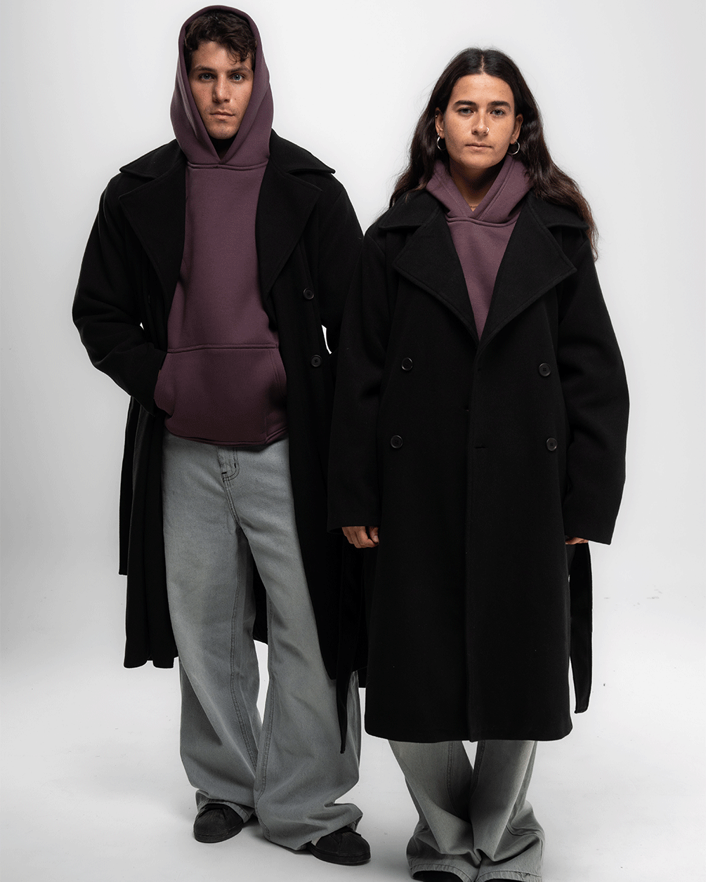 Your essential unisex winter coat, ,features a timeless design with wide lapels, a waist tie, and two convenient pockets for your phone, wallet, keys, or hands.