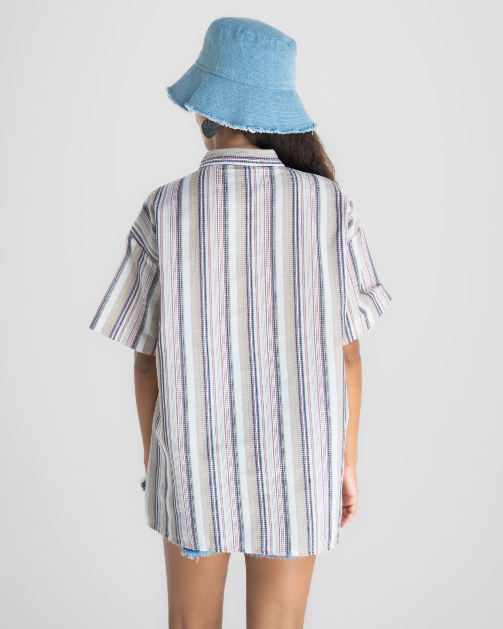 Short-sleeve button-up shirt with a relaxed fit, featuring colorful vertical stripes in a lightweight, breathable fabric! Perfect for casual, warm-weather wear.