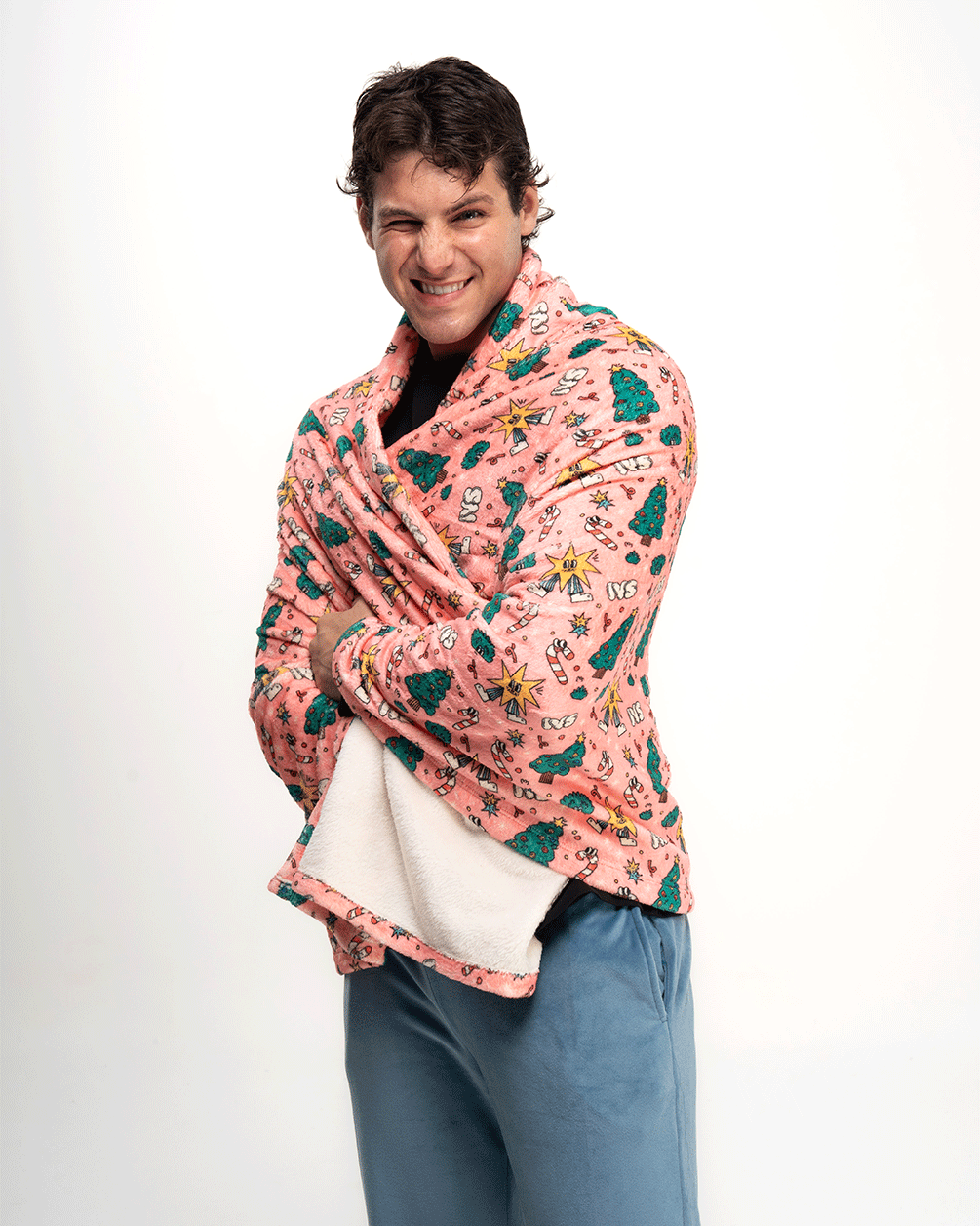 Keeps you warm, indoors and outdoors. A fluffy polar material with statement IYS designs.