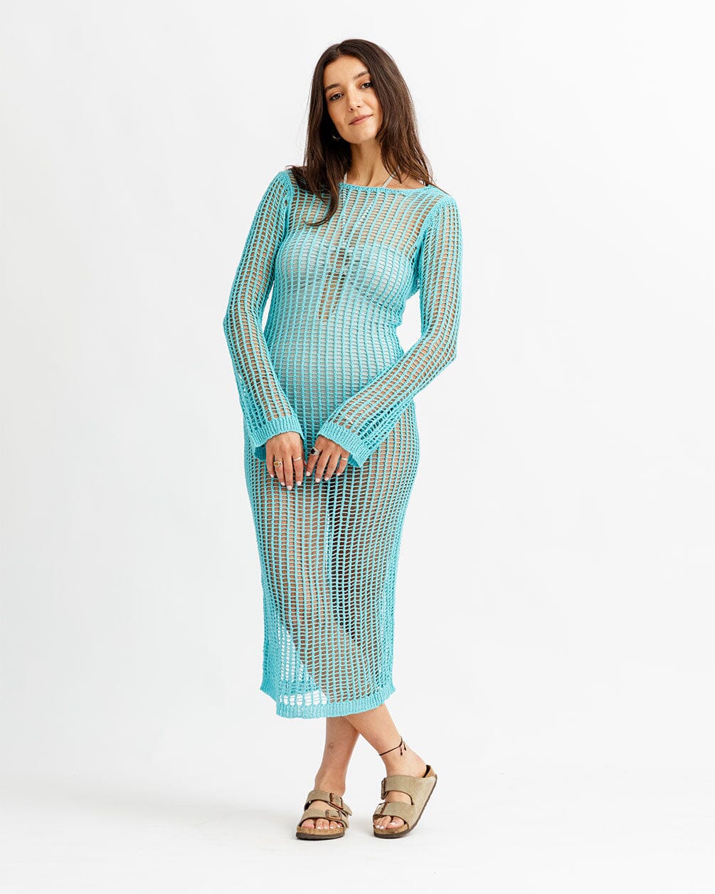 Cyan Knitted Fishnet Dress Fishnet Dress IN YOUR SHOE S-M