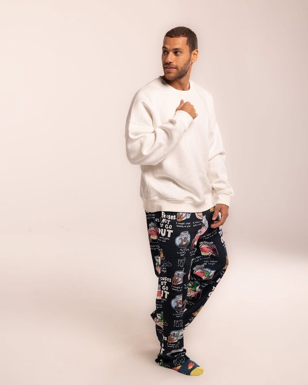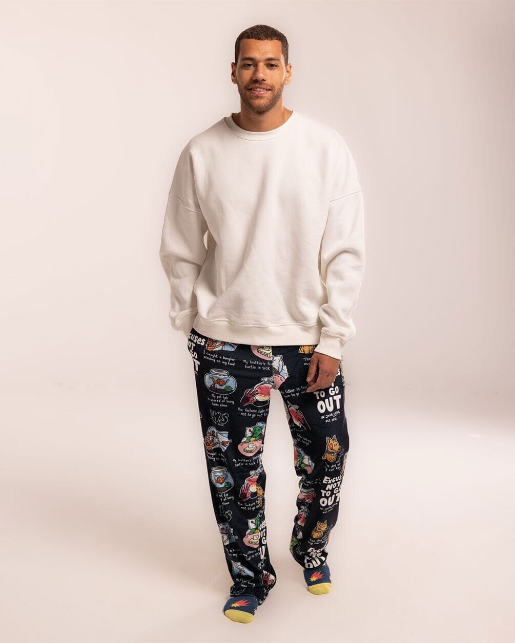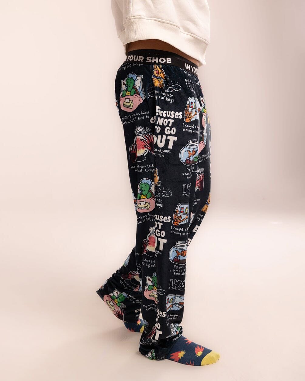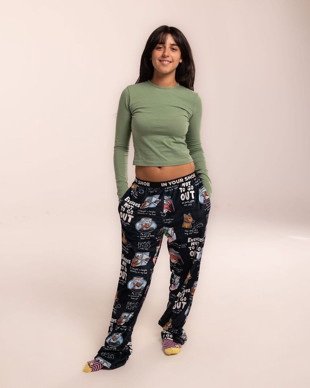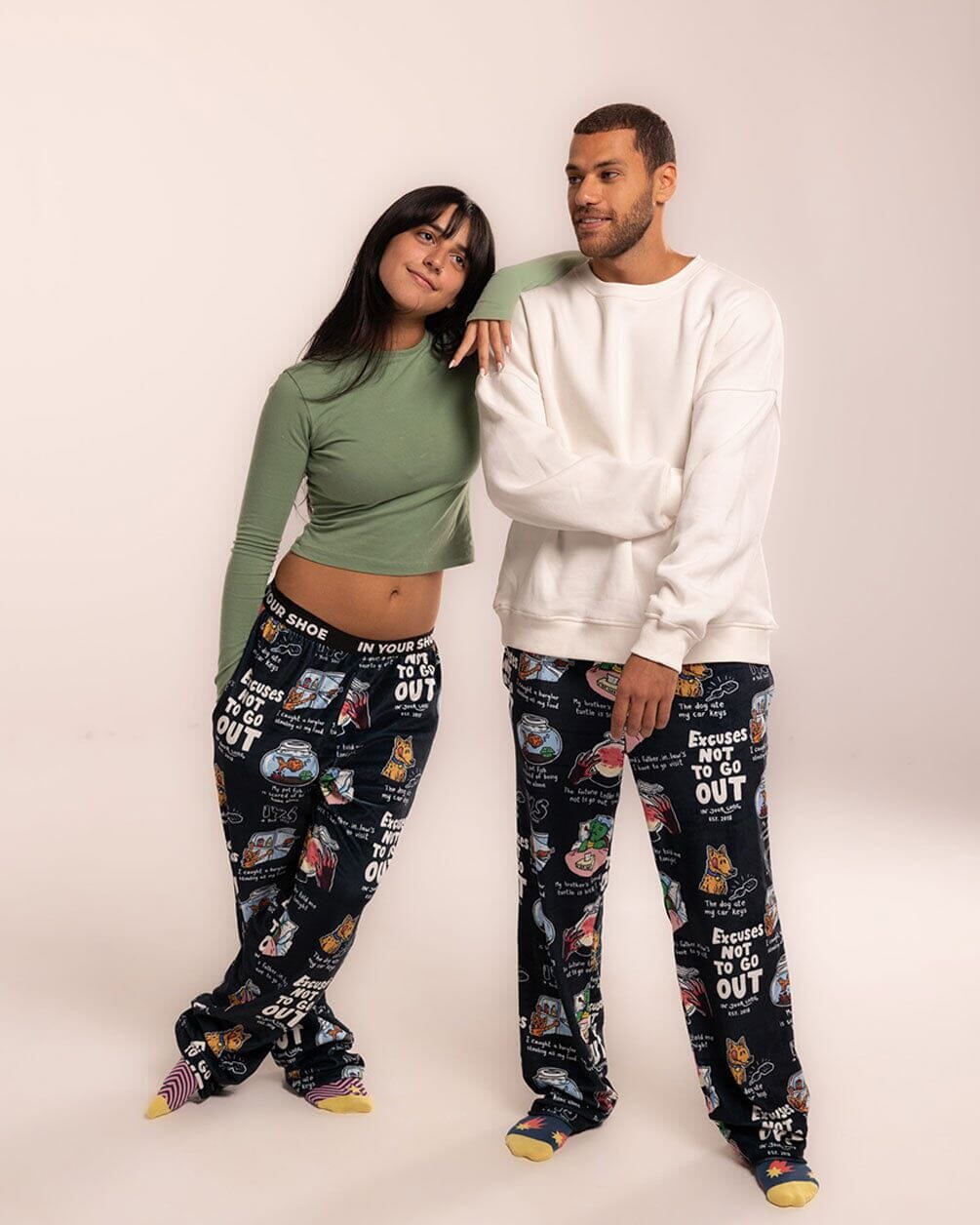 Pyjama pants that come with instructions: stay in. Made for declined invites, delivered food, and long conversations with your ceiling.