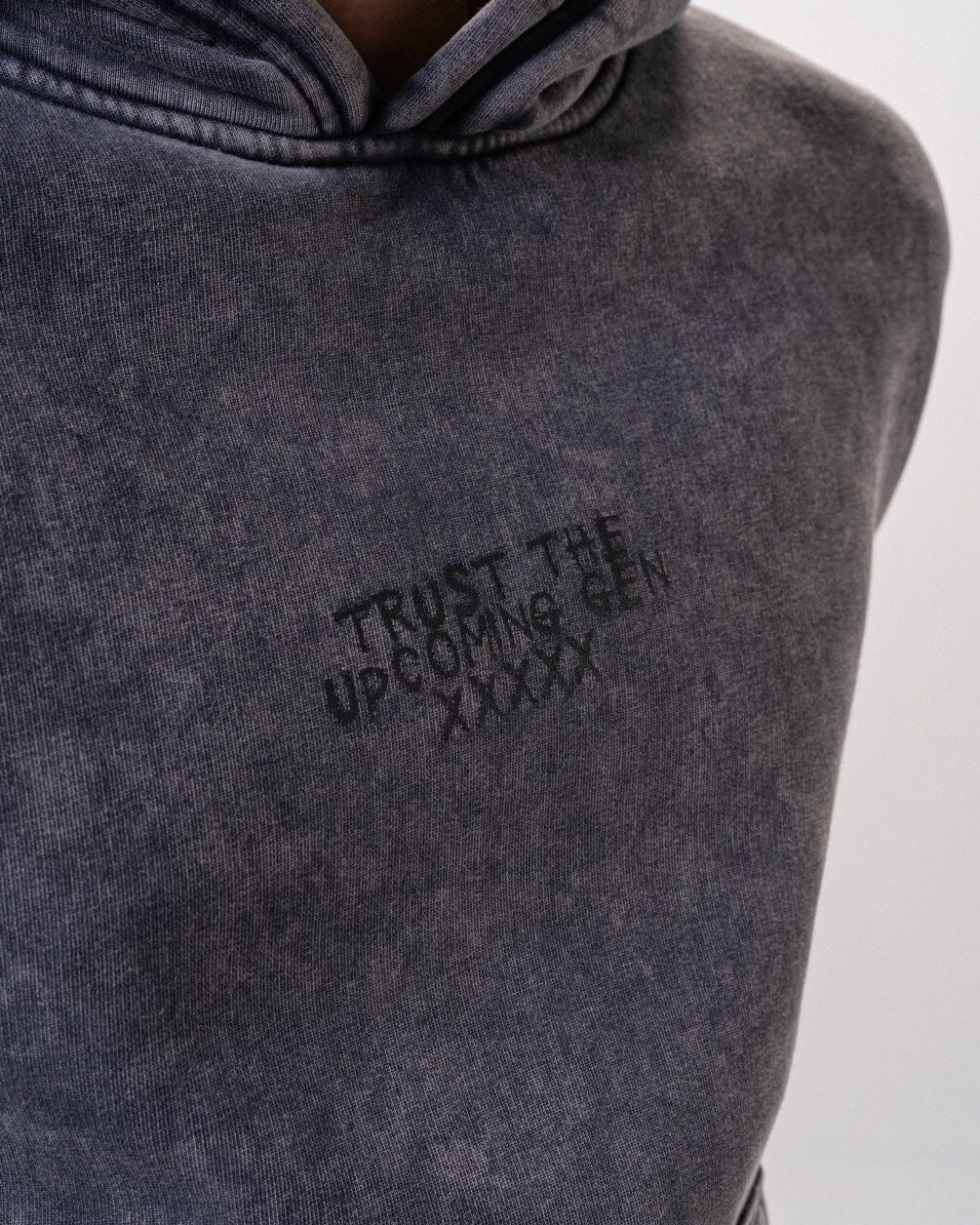 With “Trust the Upcoming Gen” stamped on the front, this piece speaks belief before words. Boxy fit, washed finish, and a mindset that doesn’t wait for permission.
