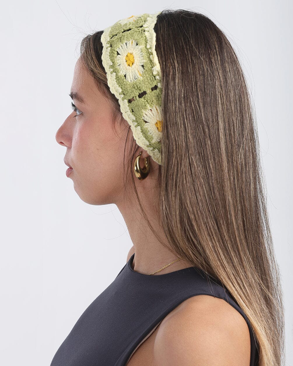 A lightweight crochet bandana with a delicate  pattern and soft texture. Perfect for adding a stylish touch to any outfit.
