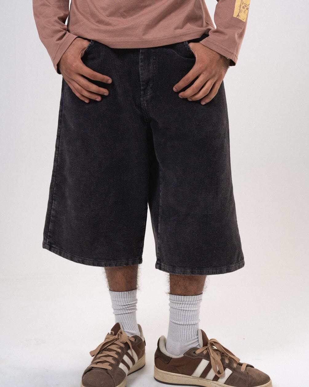 Male Black Corduroy Washed Wide Leg Jorts Jorts IN YOUR SHOE S