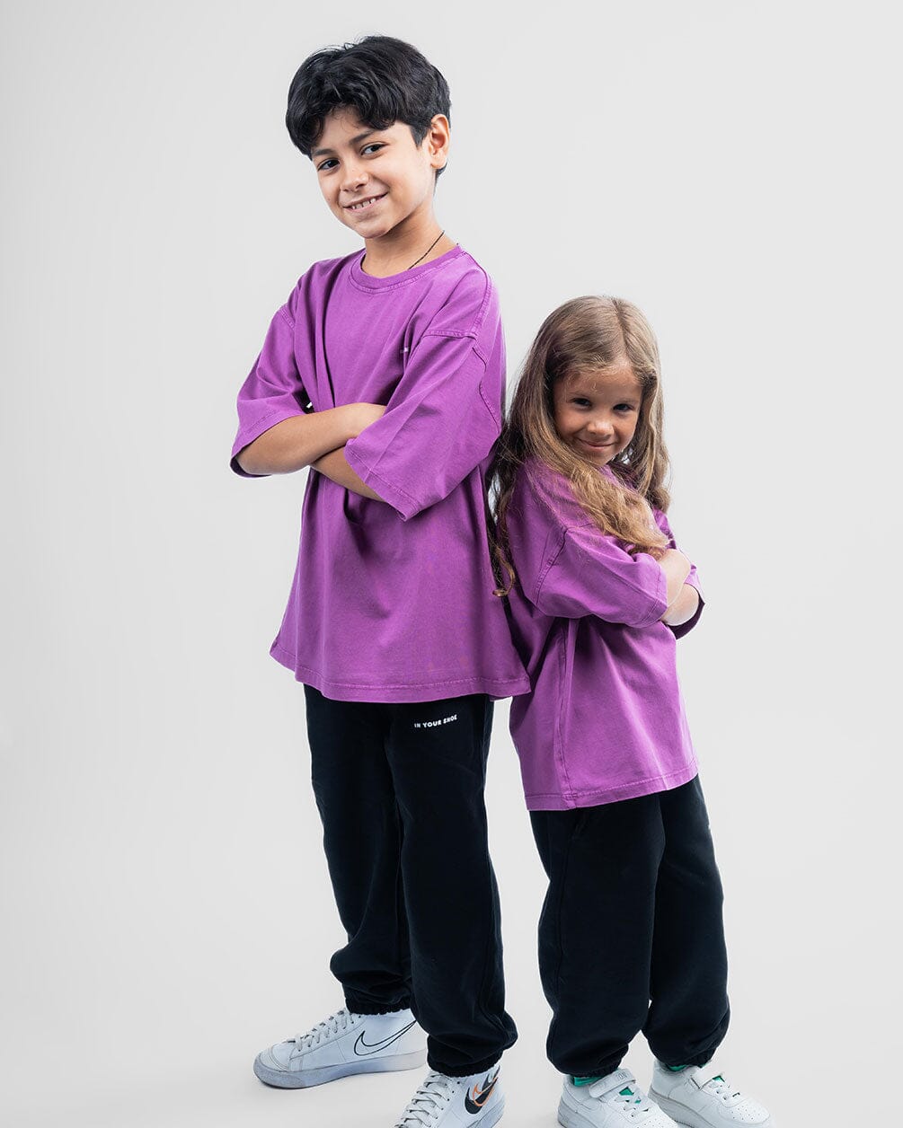 Comfy oversized tee for kids, made from soft, washed cotton. Features a relaxed fit and subtle logo detail, easy to wear, hard to take off.