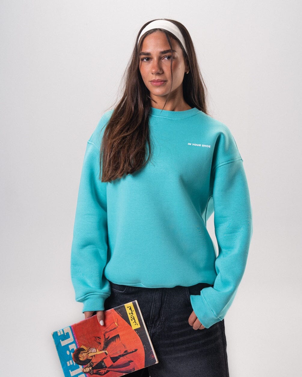 Turquoise Blue Balloon Sleeves Oversized Crewneck Crewnecks IN YOUR SHOE S