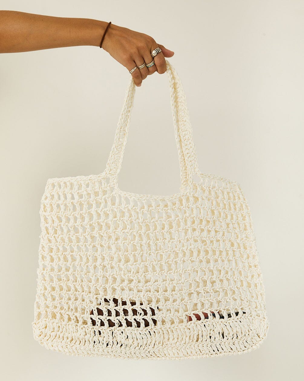 Meet your new go-to for beach days and beyond. This net tote bag is lightweight, breathable, and perfect for carrying all your essentials. With its airy design and sturdy, semi-long handles, it’s as stylish as it is practical—ideal for a day at the beach or a quick market run.