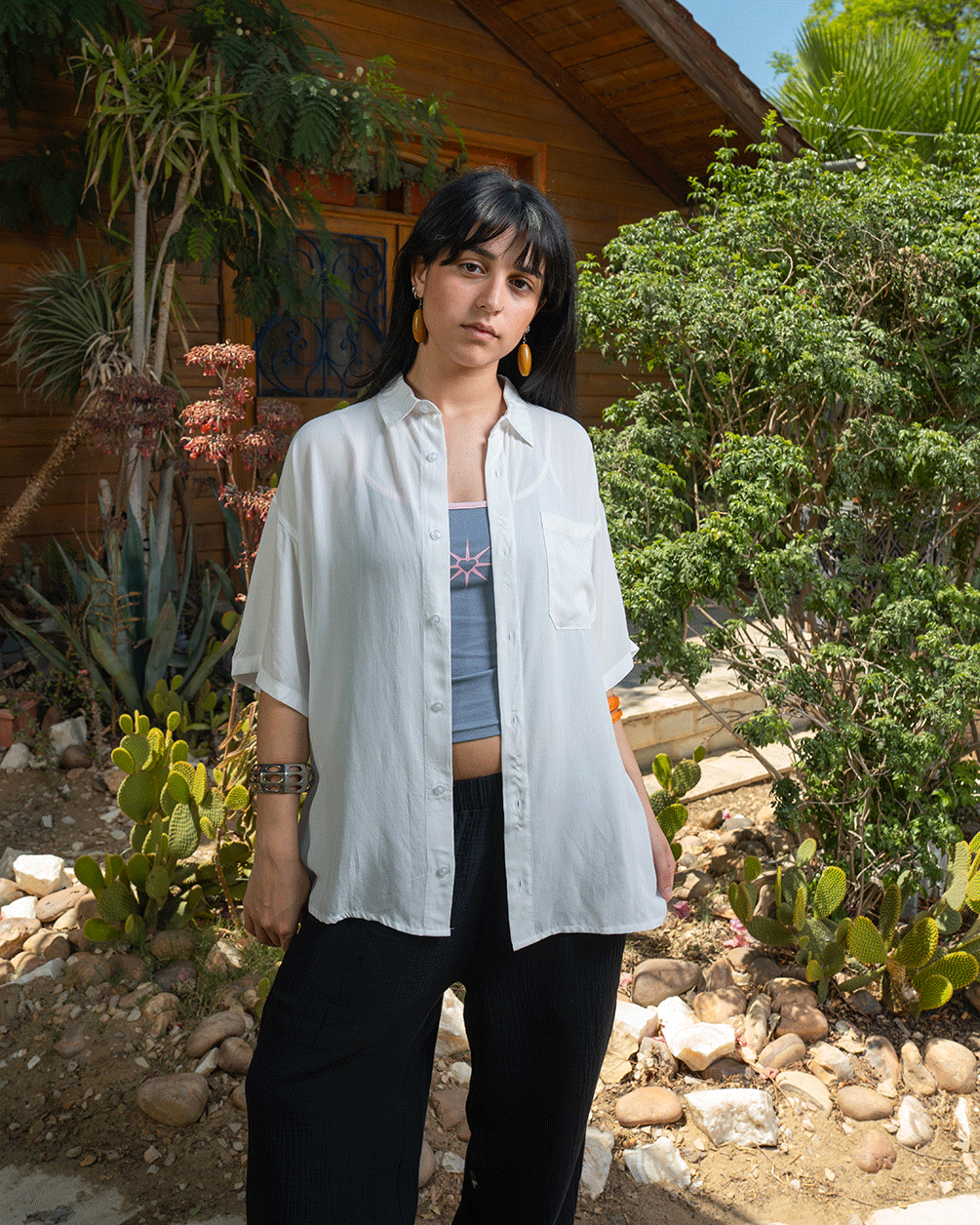 Easygoing and oversized, this unisex short-sleeve shirt comes in a breezy sage green—perfect for everyday wear, any way you style it.